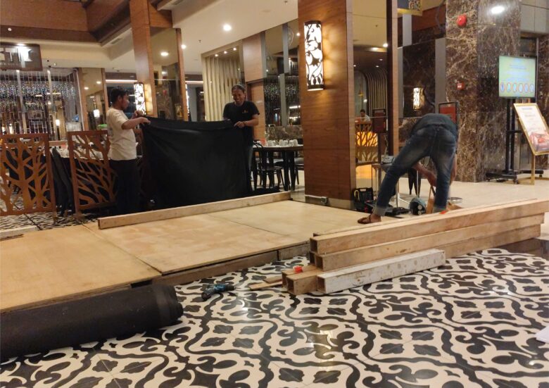 Pemasangan untuk indoor maupun outdoor, baik yang di adakan di mall, hotel, gedung, aula, hall, auditidorium, lobby gedung, dan lapangan terbuka.